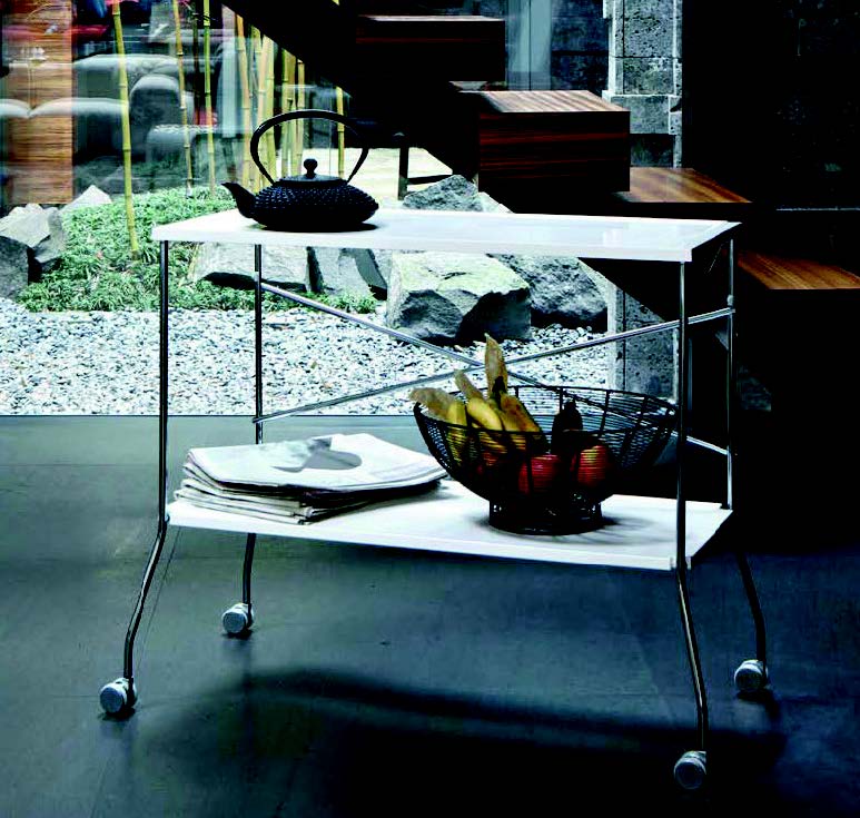 Carrello pieghevole con struttura cromata e piani in PMMA