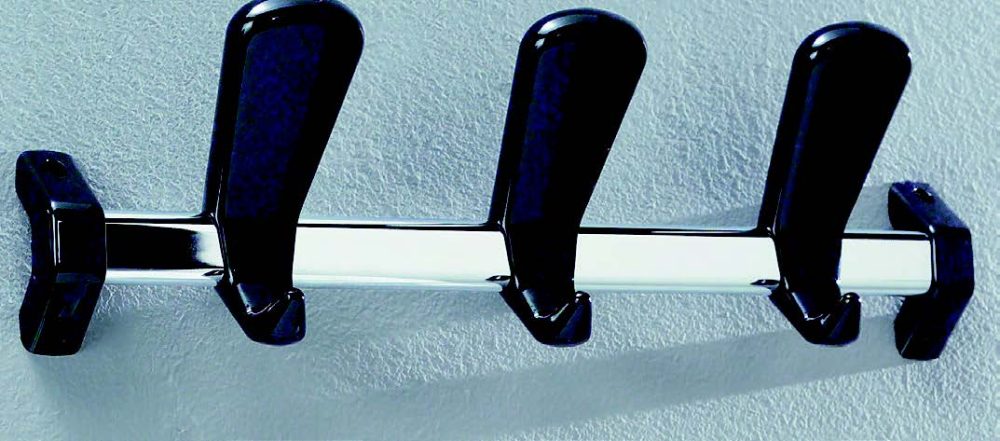 Portabiti da parete cromato con ganci in tecnopolimero cm 45 x p10 x h14 a 3 ganci con possibilità di aggiungere altre barre in linea