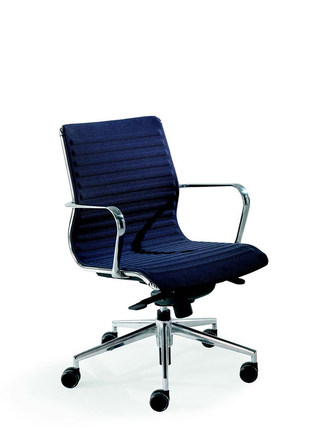 Poltrona semi direzionale imbottita, oscillante fulcro avanzato 3A, base alluminio lucido, braccioli in alluminio lucidi con ruote auto frenanti gommate
