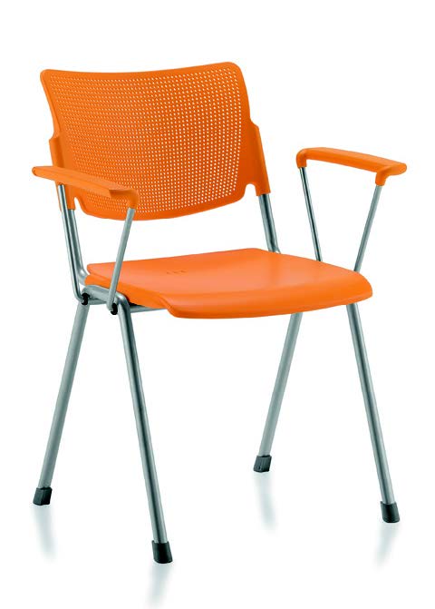 Sedia a 4 gambe in metallo verniciato nero o grigio con sedile e schienale in polipropilene  CON BRACCIOLI