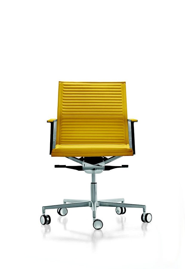 Poltrona direzionale schienale medio, scocca imbottita, oscillante multiblock, alzata a gas struttura in acciaio cromato o verniciato bianco lucido