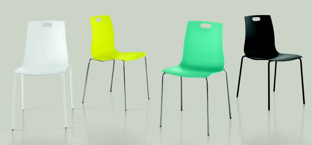 sedia struttura in acciaio, con monoscocca in polipropilene