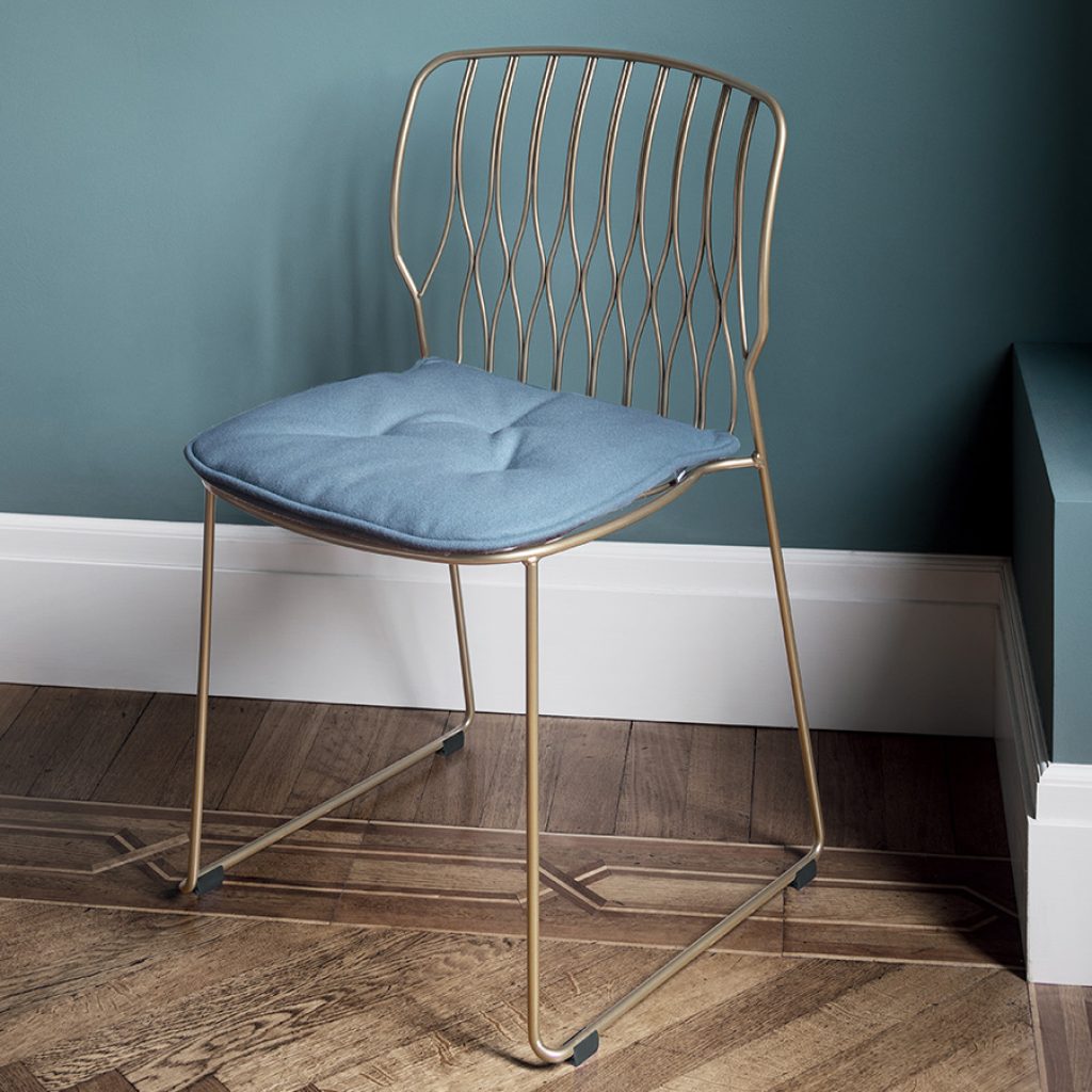 Sedia impilabile Bontempi Casa in acciaio laccato, con cuscino opzionale in diversi rivestimenti.