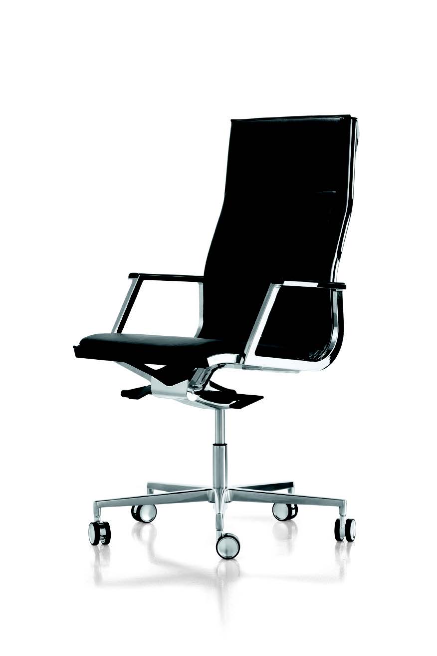 Poltrona presidenziale imbottita con oscillante multiblok, alzata a gas copribraccia imbottiti struttura in acciaio cromato o verniciato bianco lucido
