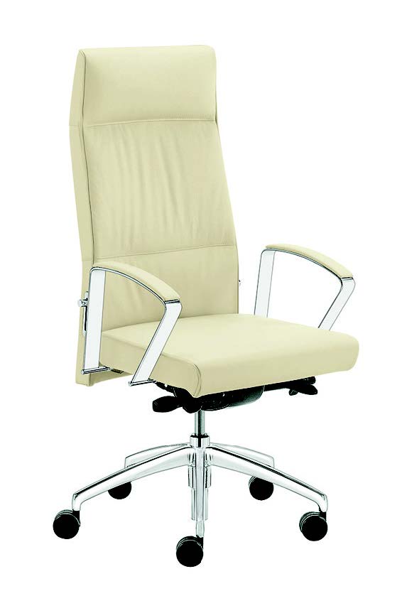 poltrona direzionale con poggiatesta struttura cromata con braccioli 6ac poggiabraccia imbottito,meccanismo synchcron con traslatore del sedile