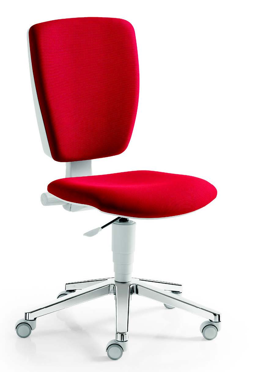 poltroncina operativa con schienale alto finta pelle, alzata a gas con contatto permanente, plastiche grige ,base cromata, senza braccioli