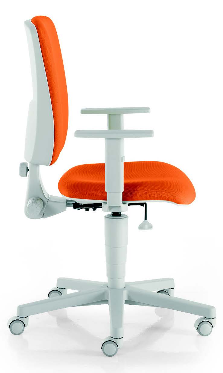 poltroncina operativa con schienale alto finta pelle, alzata a gas con contatto permanente, plastiche e base grigia, con braccioli regolabili grigi 11-BH