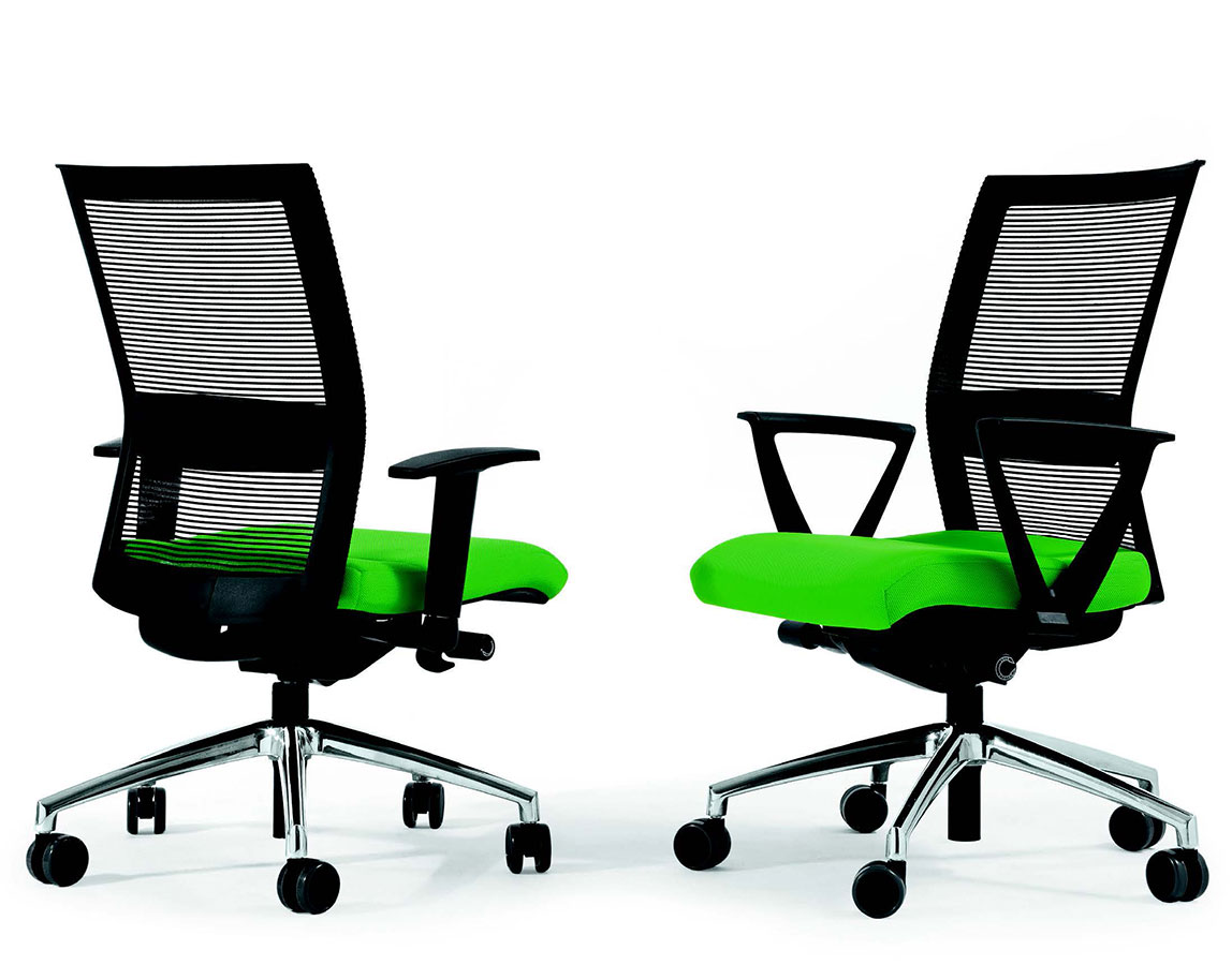Poltroncina operativa, schienale nero rete nera, movimento syncron self, base cromata braccioli neri regolabili 2D