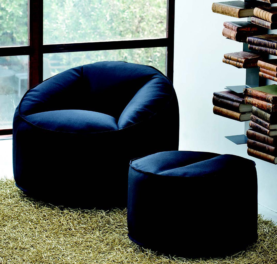 Pouf imbottito in cat b nylon ecru' e nero. Diametro 65 x h.40
