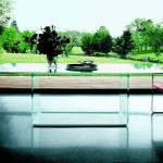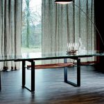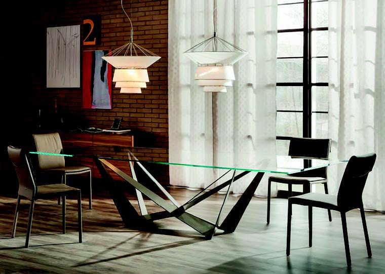 TAVOLO CON BASE IN ACCIAIO VERNICIATO, TRASPARENTE 0P0 O ARANCIO FLUO,CON PIANO IN CRISTALLO TRASPARENTE
