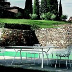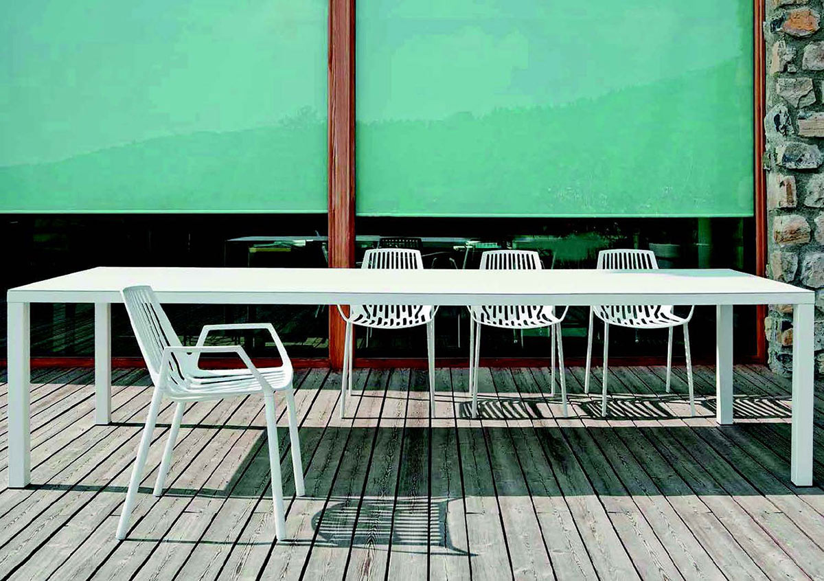 Tavolo fisso con struttura in alluminio verniciato nei colori colori bianco,grigio metallo, oro perlato,azzurro pastello,grigio polvere, rosso corallo e verde salvia