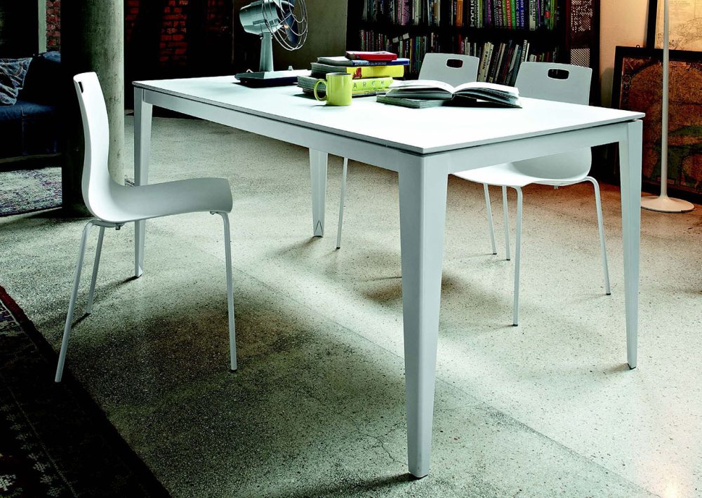 Tavolo allungabile con struttura in alluminio.