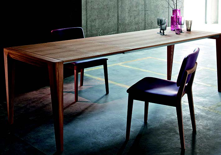 tavolo ALLUNGABILE o FISSO con struttura in legno di rovere e piano impiallacciato di rovere