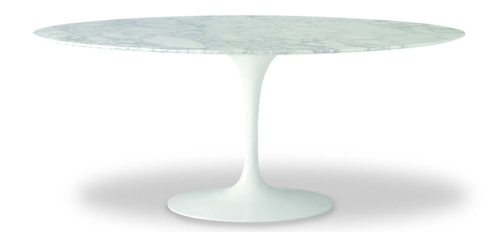 TAVOLO CON BASE IN FUSIONE DI ALLUMINIO, CON PIANO IN MARMO