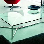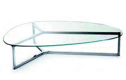 tavolino in acciaio inox lucido con piano in cristallo trasparente